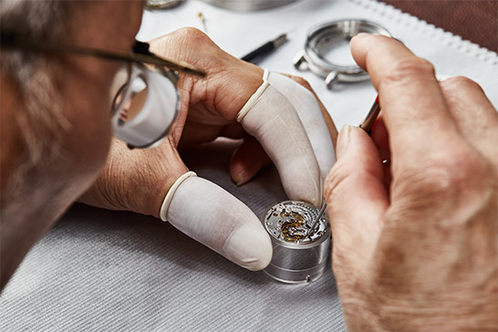 细致检查机芯各个零部件。采用腕表原装备件更换磨损零部件。 针对无序列号机芯,如果适用,执行技术升级,更新机芯版本。悉心重新组装机芯。腕表认证制表师运用精湛技艺,使用优质润滑油润滑啮合点。 这保证了机芯长久精密的运转性能。